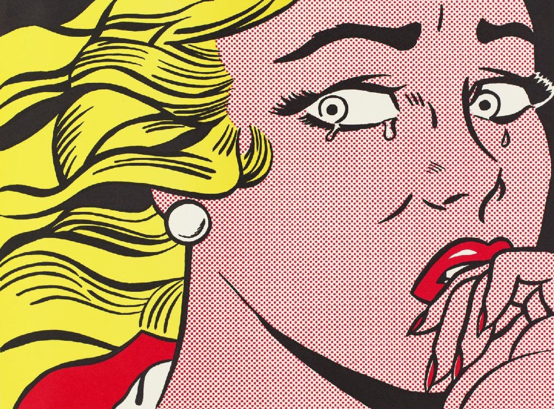 "Crying Girl" is perhaps one of Lichtenstein's most famous works, depicting a teary-eyed woman in a state of emotional distress. The exaggerated tears and melodramatic expression are rendered with precision, highlighting Lichtenstein's ability to elevate mundane subject matter into art.