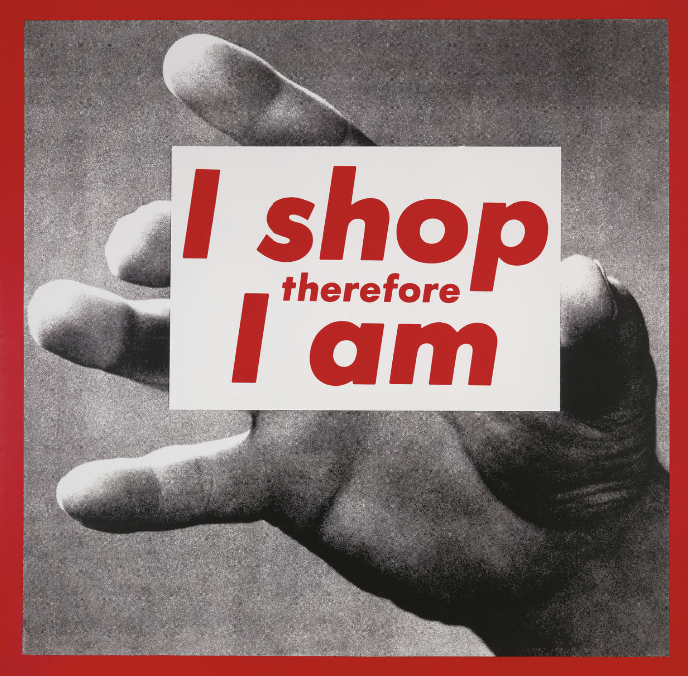 Kruger's signature style is immediately recognizable: black-and-white photographs overlaid with declarative, often confrontational text in white-on-red Futura Bold Oblique. The phrases-short, imperative, and provocative-address issues of identity, power, sexuality, and consumerism. Examples of her iconic statements include phrases like "Your Body is a Battleground", "I Shop Therefore I Am", and "We Don't Need Another Hero". These works compel viewers to critically examine the social constructs and institutions that shape modern life.Her approach is heavily influenced by critical theory and feminist thought, particularly the writings of Jean Baudrillard, Michel Foucault, and Laura Mulvey. She has often cited the influence of advertising, mass media, and popular culture on her work, recognizing how visual language can manipulate perception and reinforce social norms. By appropriating the tools of mass media, Kruger turns them against themselves, transforming commercial imagery into instruments of critique.