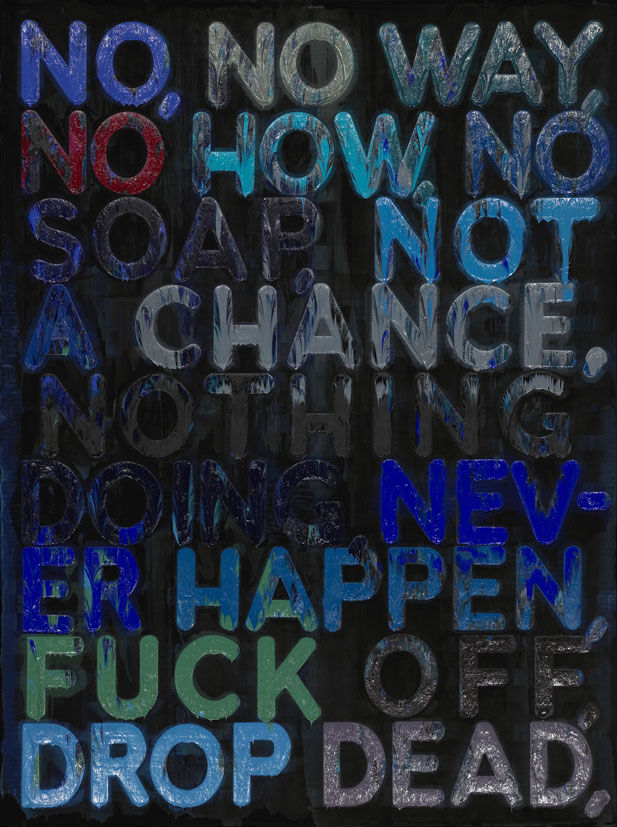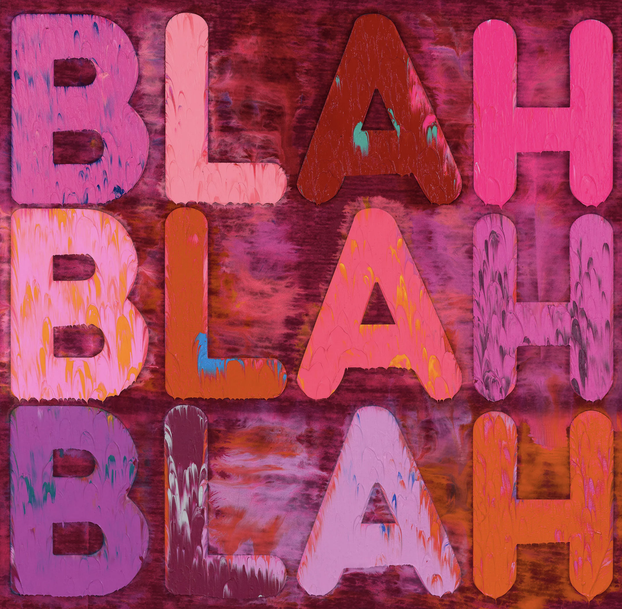 He also made series like Blah, Blah, Blah, where repeated words such as "Blah" emphasize emptiness, repetition, meaninglessness, or perhaps the overflow/saturation of language.
