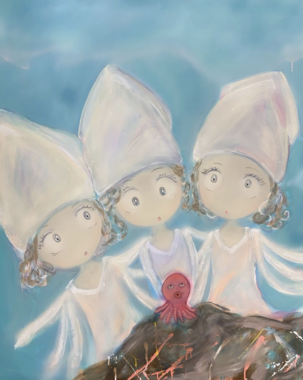 Though inspired by Mucha and Art Nouveau, Tokita is less concerned with decorative flourish than with psychological presence. Her figures, often centered and isolated, project a stillness that feels both personal and universal. Their eyes, bright yet unreadable, mirror the viewer’s own memories and uncertainties. In this, Tokita offers less a portrait of another person than an invitation to recognize oneself.
