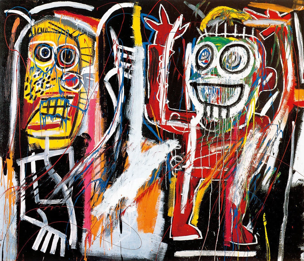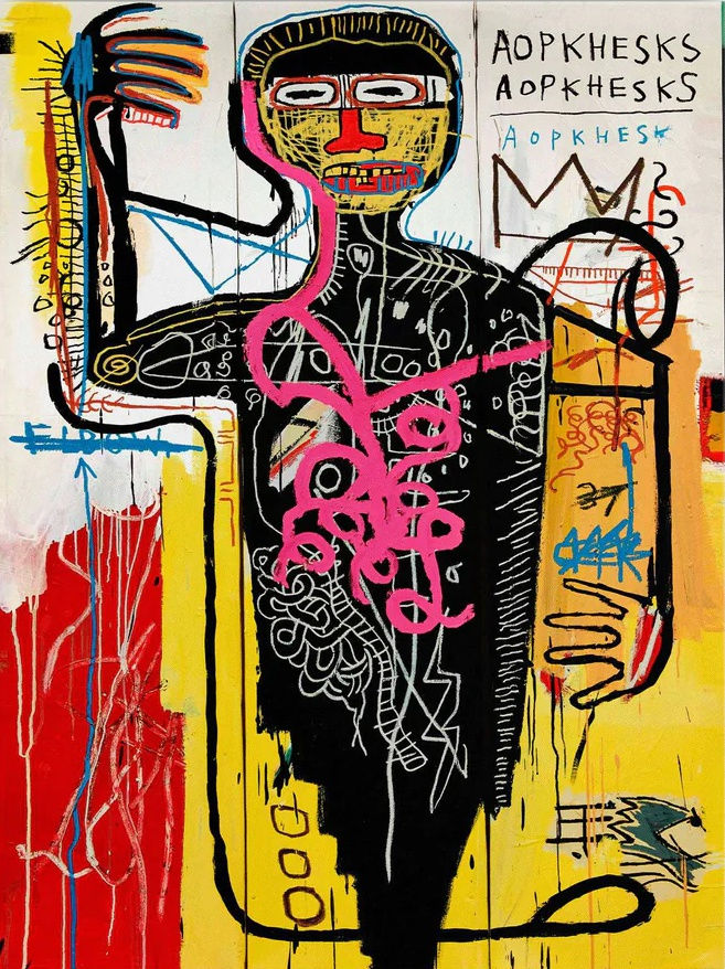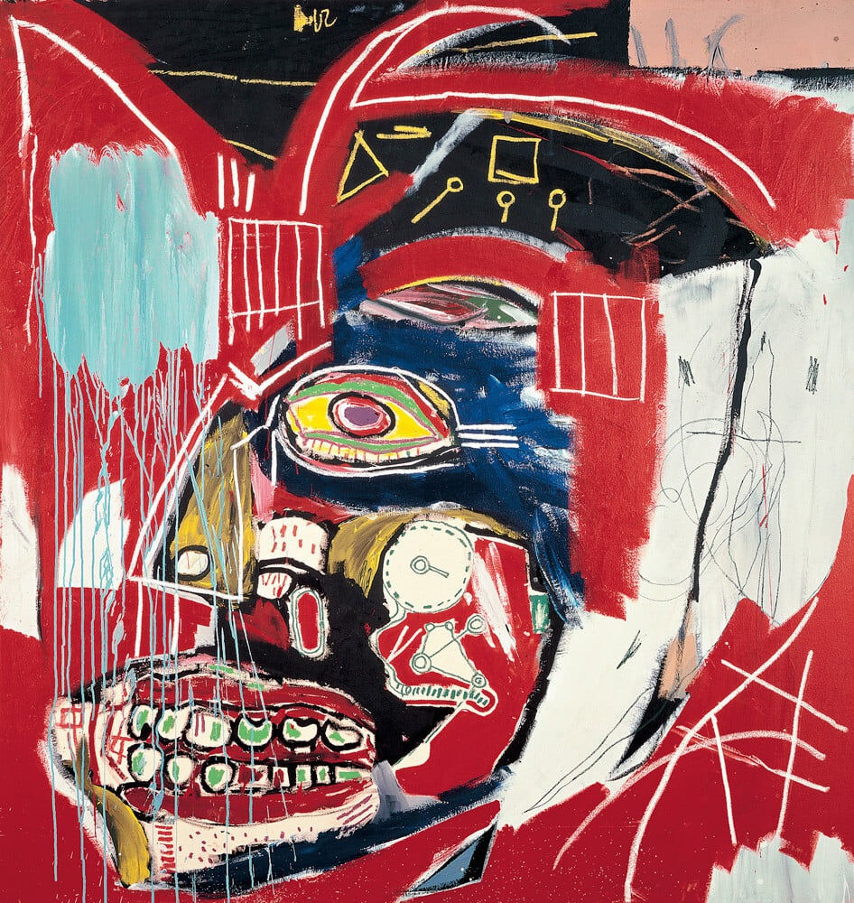 "Untitled (Devil)," 1982 - Purchased for $85 million by Yusaku Maezawa at Phillips in 2022, this large canvas symbolizes Basquiat's transition from street artist to fine artist. It presents a self-portrait of sorts, equating the artist with the figure of a devil.