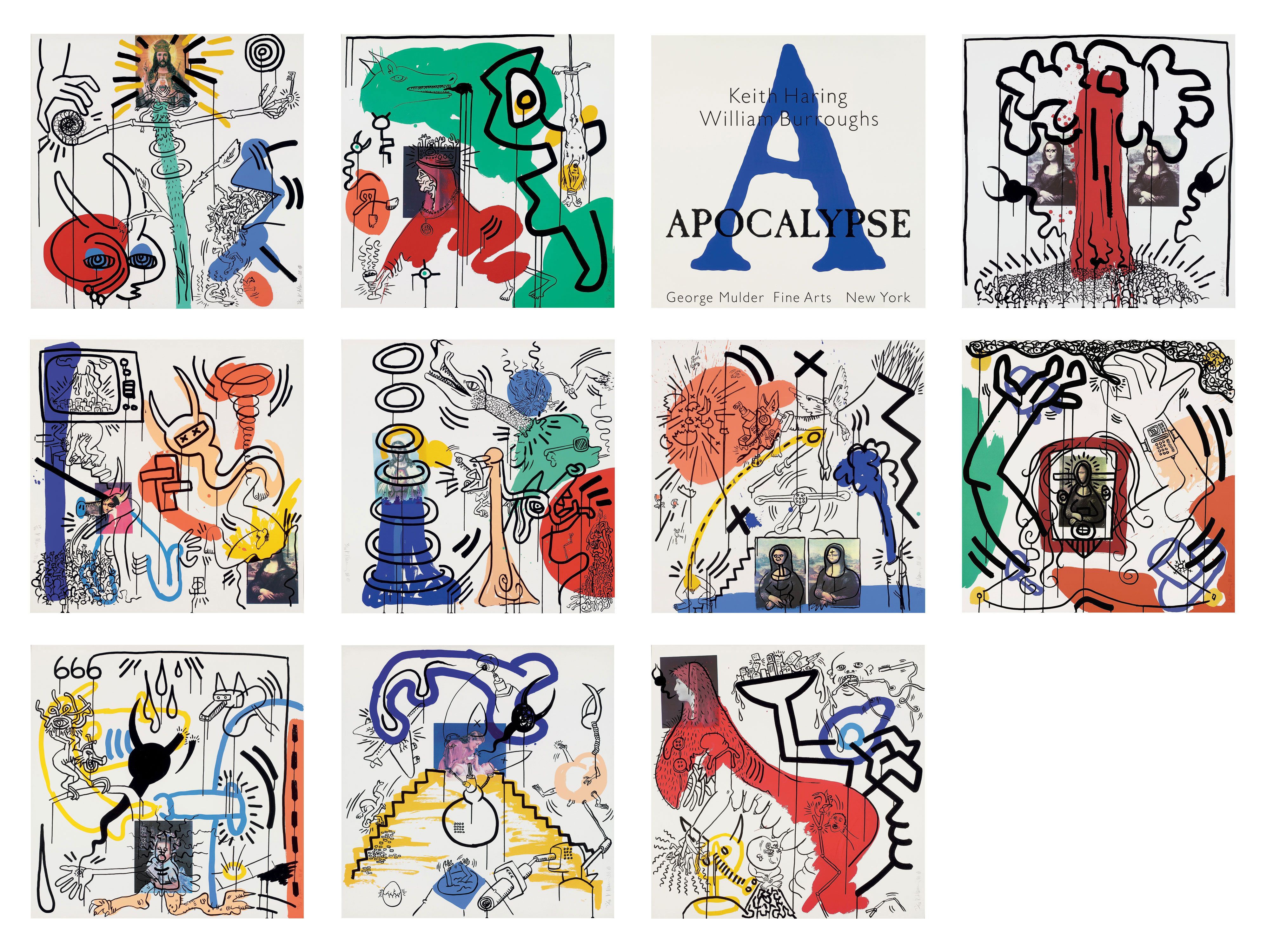 Keith Haring's William S. Burroughs Apocalypse is a striking series that merges the visual dynamism of HARING'S art with the provocative, free-form text of William S. Burroughs. The origins of this collaboration trace back to 1978 when Haring, then a student at the School of Visual Arts, encountered the Nova Convention, a gathering of Beat poets and downtown artists including Burroughs, Allen Ginsberg, Laurie Anderson, and Patti Smith. This pivotal moment led Haring to delve into Burroughs and Brion Gysin's 1977 book The Third Mind, which detailed methods of breaking down language—a technique that profoundly influenced HARING'S artistic approach.