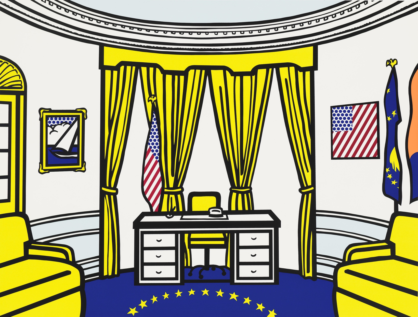 Roy Lichtenstein’s The Oval Office is a notable piece created as part of the Artist for Freedom of Expression project, which supported the Democratic National Committee during the 1992 Clinton/Gore campaign. This commissioned work showcases LICHTENSTEIN’S ability to blend political commentary with his distinctive pop art style.